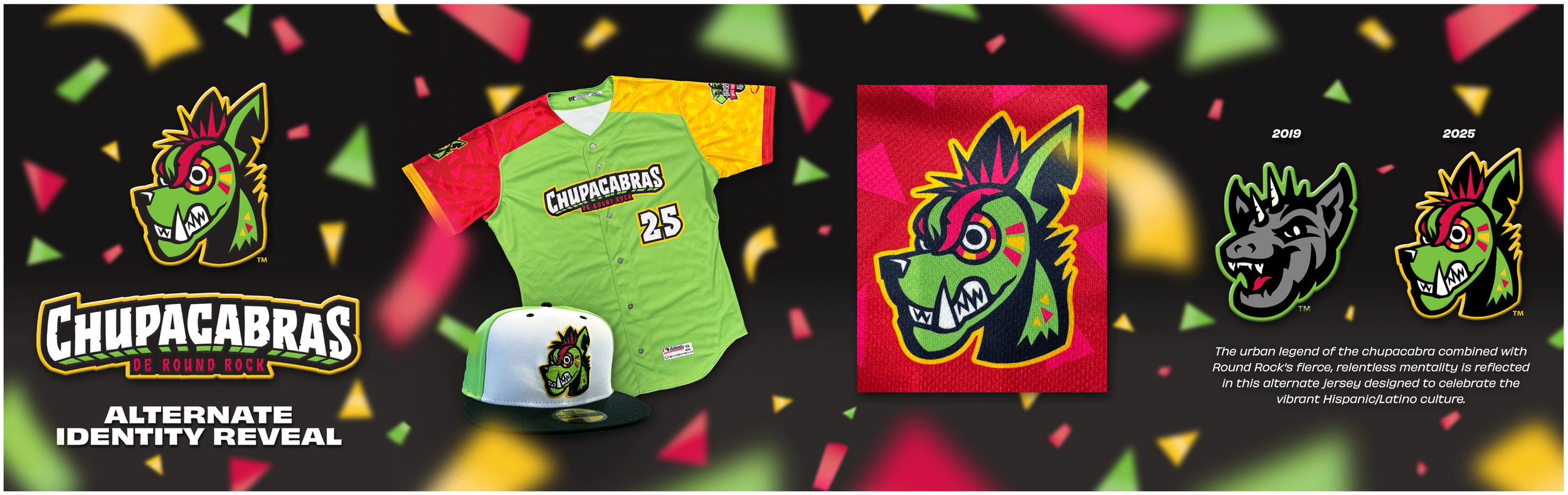 I created a new MiLB cap, jersey, and alternate logo as part of the Round Rock Chupacabras' refreshed team identity for the Copa de la Diversión. I was encouraged to explore creatively by experimenting with bold visual directions and unconventional design elements.