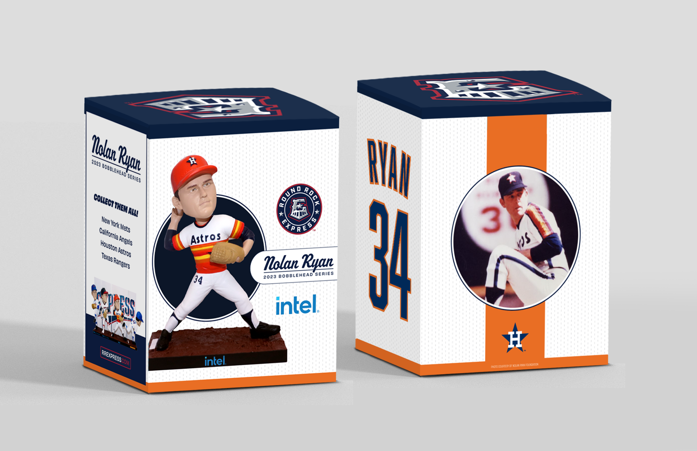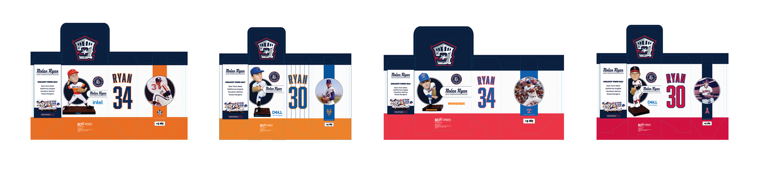 This project is a series of bobbleheads set to release in summer 2023. There are four versions of this bobblehead, each portraying Nolan Ryan on a different team.