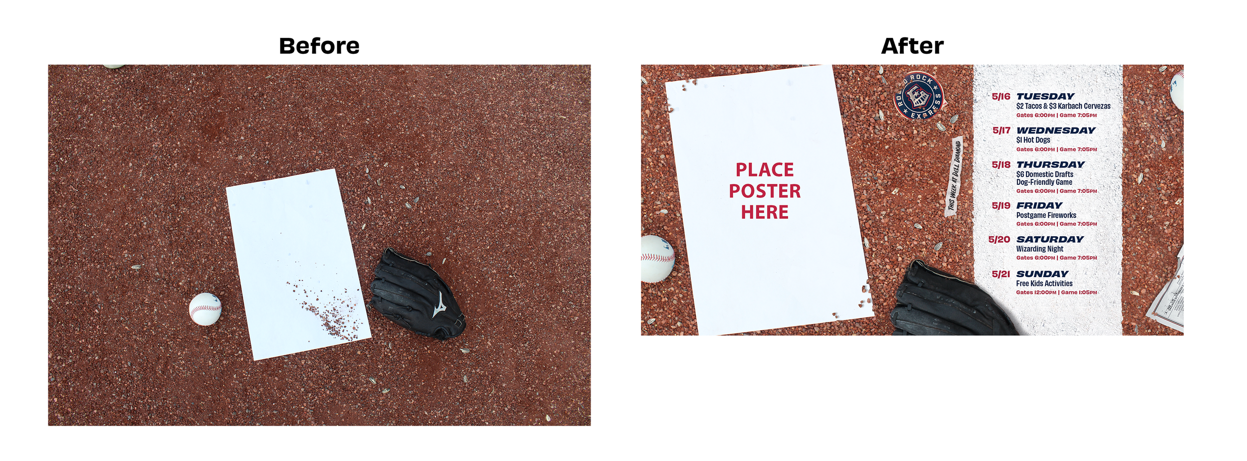 My favorite of these would be the Homestand Carousel in which I photographed various objects such as papers, sunflower seeds, game equipment, among others objects to create a photorealistic solution to revealing the week’s events.